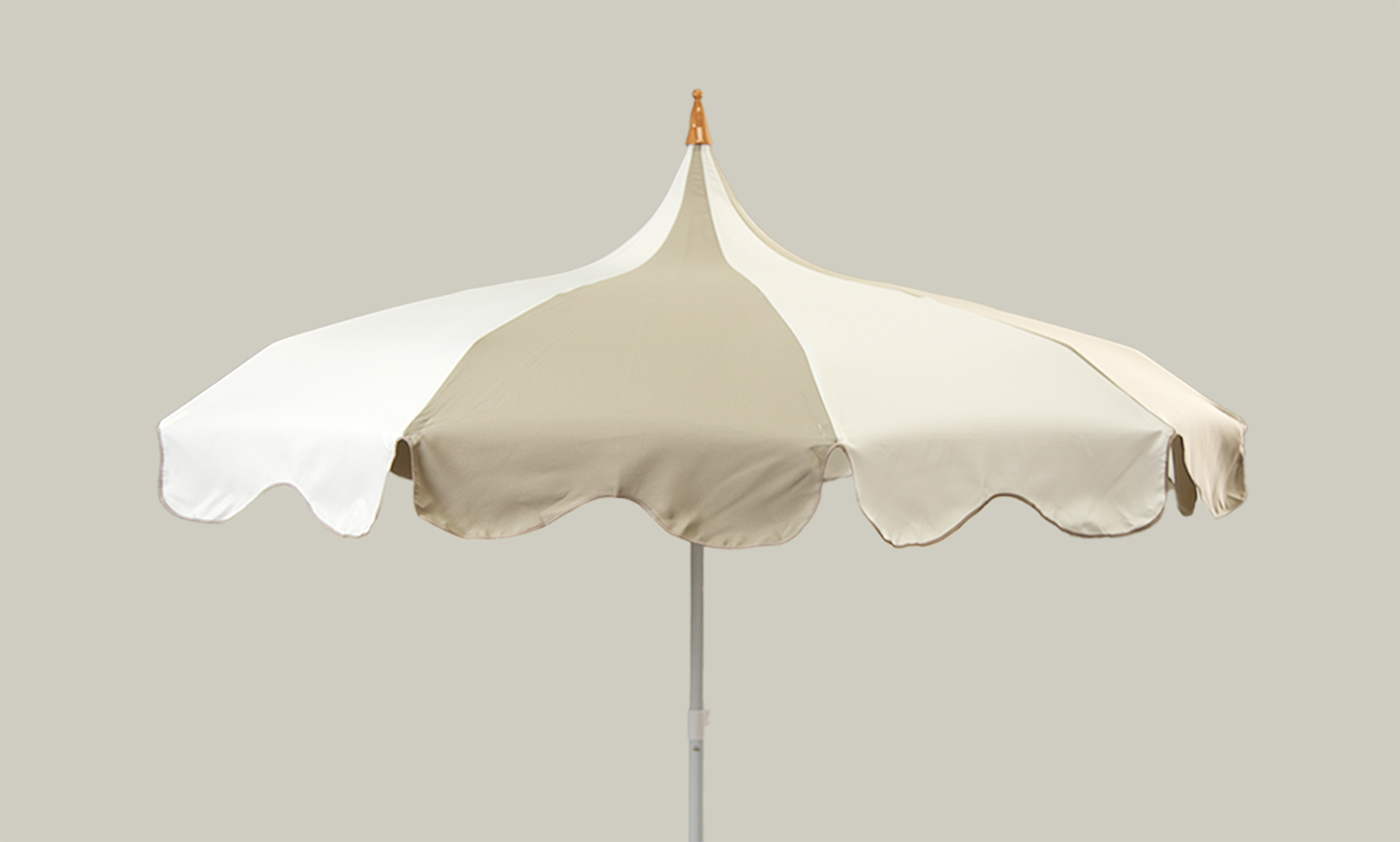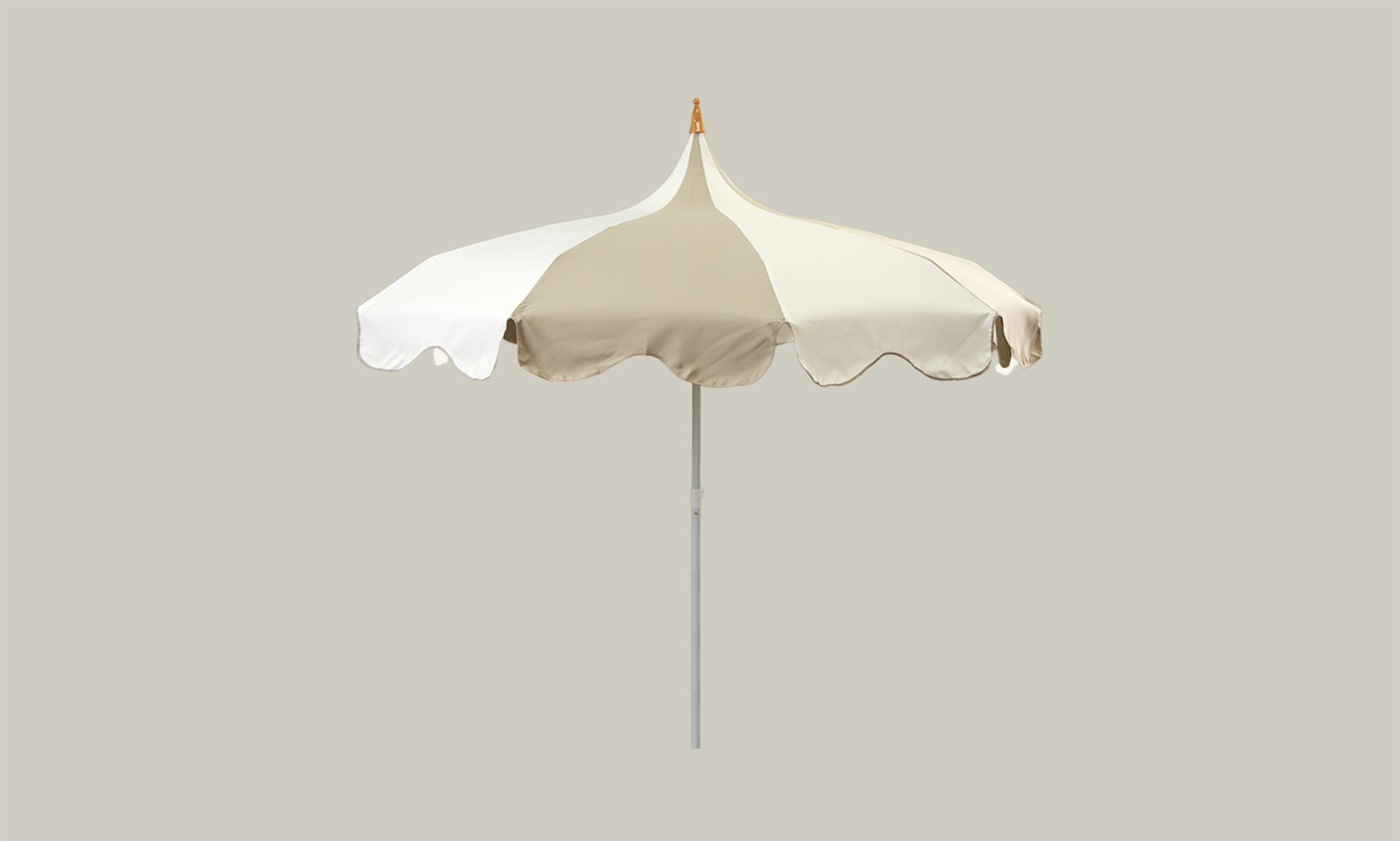 - Design: White and sand stripe canopy with a breezy, coastal feel.