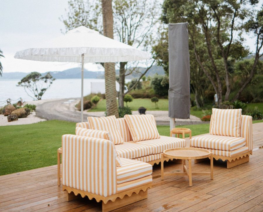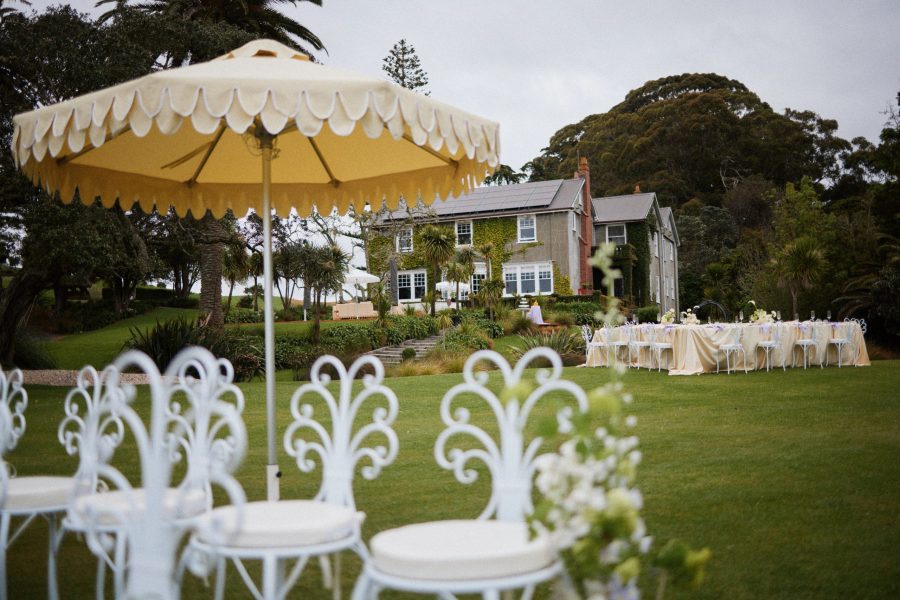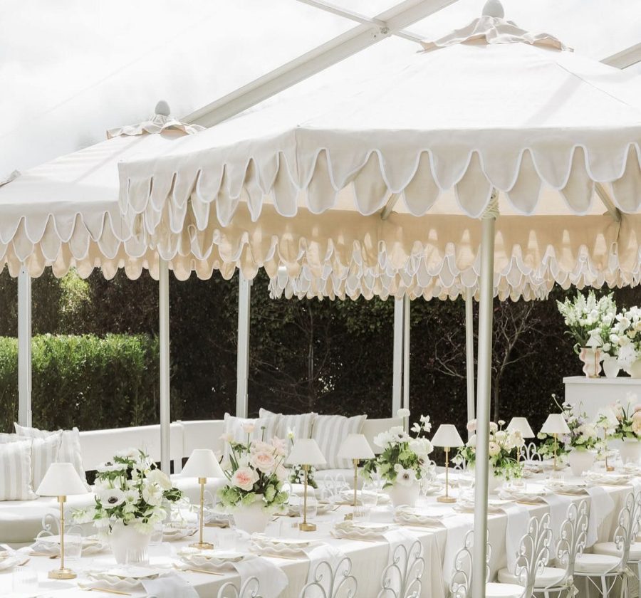 Double Scalloped Umbrella – Butter with White Trim